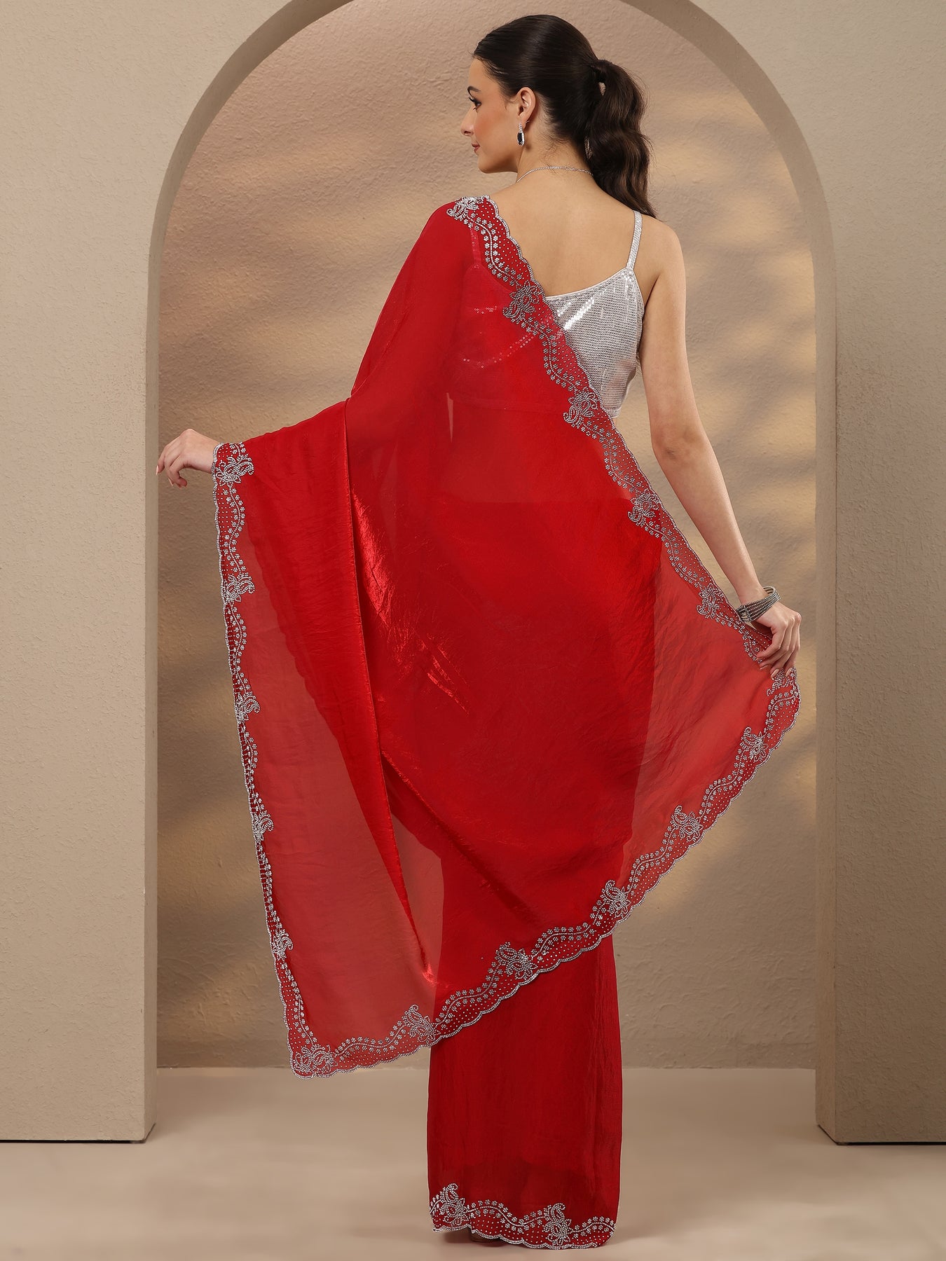 Our Red Solid Sarees Silk Blend Saree Features Captivating Solid. Complemented With An Unstitched Blouse Piece. This Charming Saree Is Perfect For Festive Occasions.