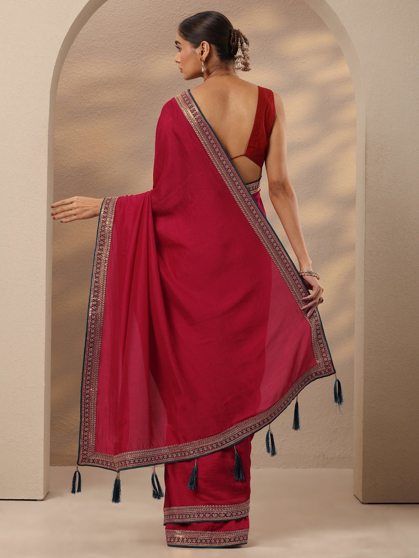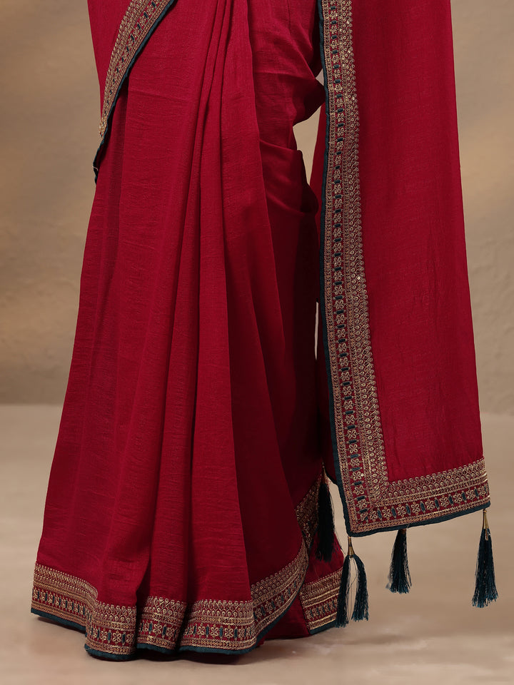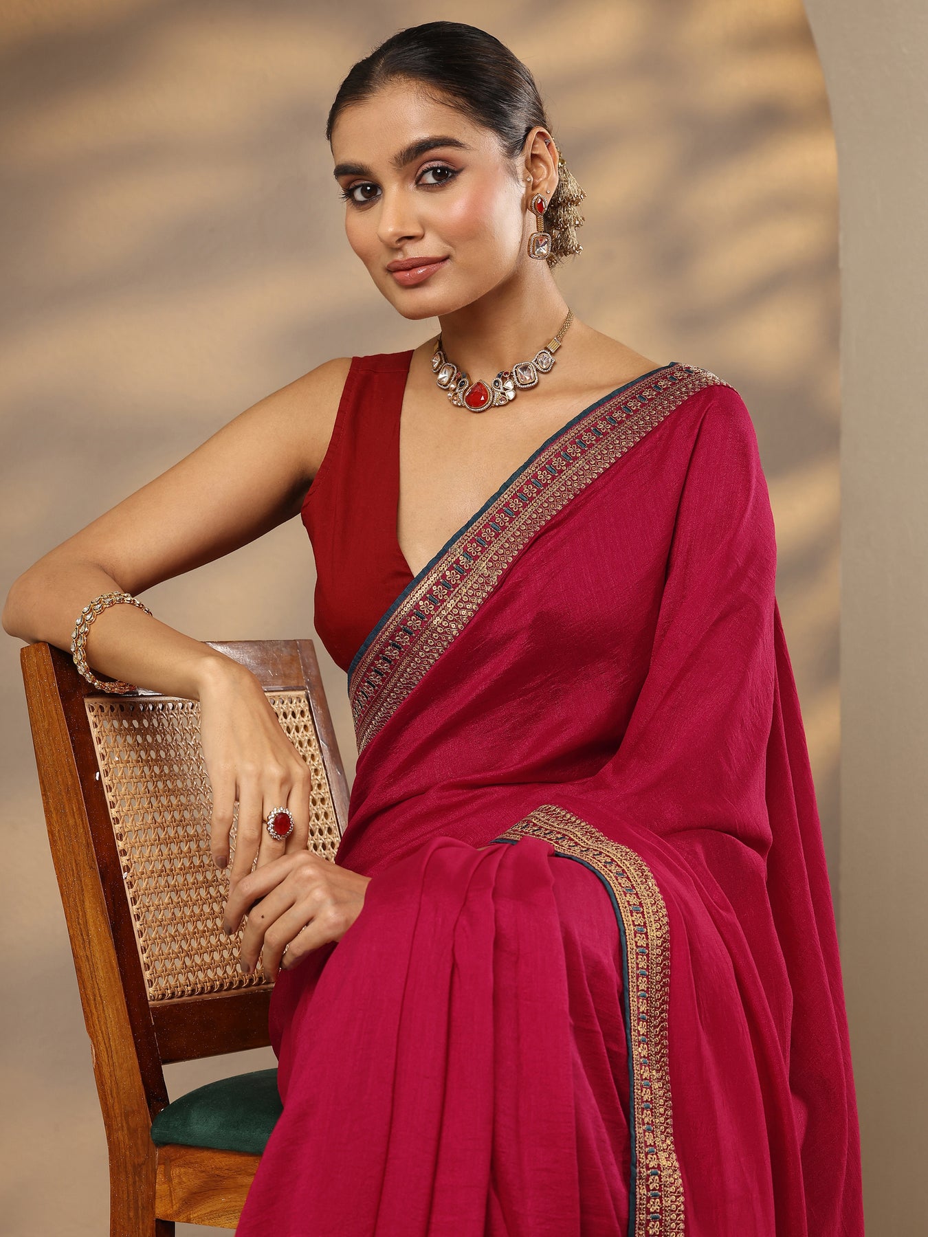 Our Red Solid Sarees Silk Blend Saree Features Captivating Solid. Complemented With An Unstitched Blouse Piece. This Charming Saree Is Perfect For Festive Occasions.