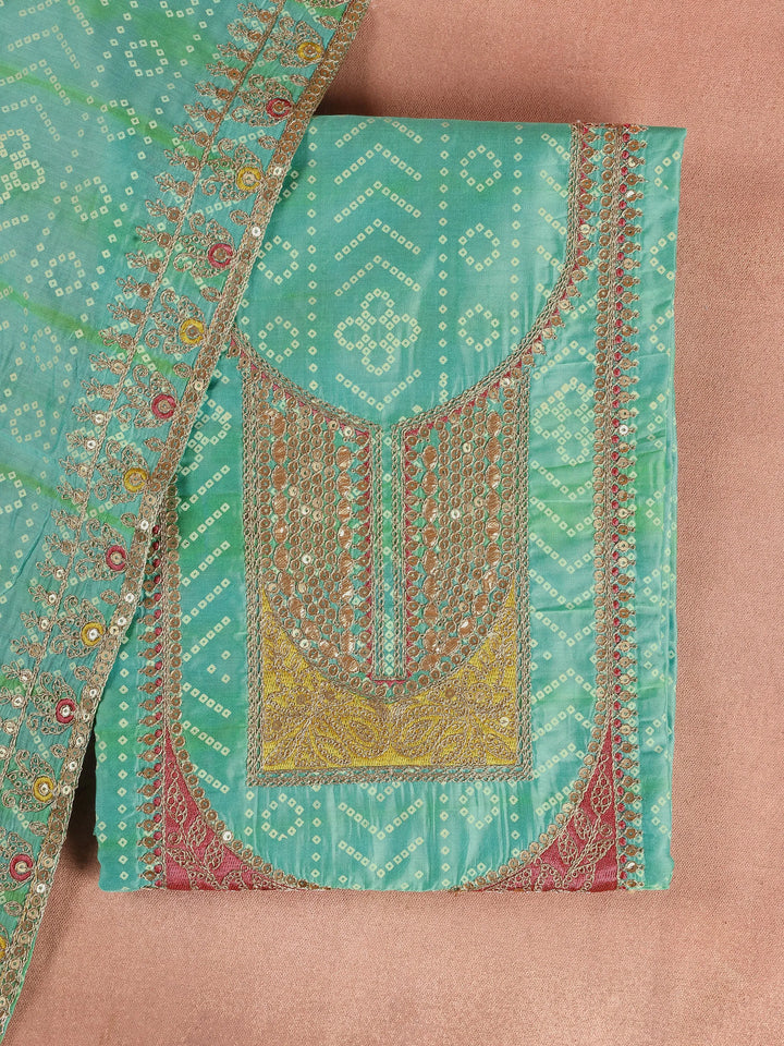 Turquoise Printed Silk Blend Unstitched Suit Set