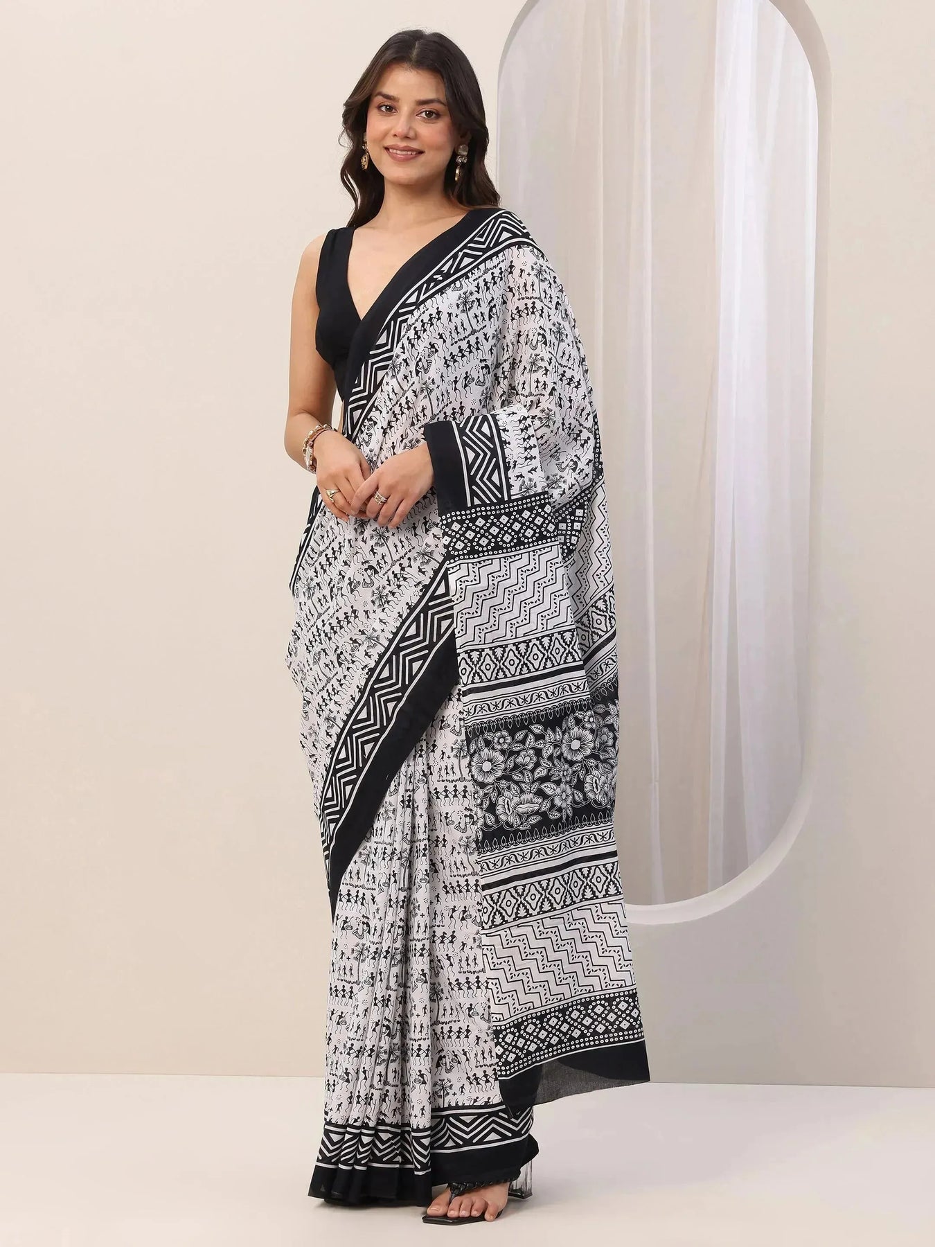 {"id":8358911705238,"title":"White Printed Cotton Saree With Unstitched Blouse","handle":"white-printed-cotton-saree-with-unstitched-blouse-16196","description":"\u003cp\u003eOur Black printed Cotton saree features captivating Tribal print. Complemented with a Blouse Piece. This charming saree is perfect for Casual occasions.\u003c\/p\u003e","published_at":"2025-03-13T10:51:46+05:30","created_at":"2025-03-05T16:29:53+05:30","vendor":"Libas","type":"All Products","tags":["16196","Cotton","Cotton Saree","cotton sarees","Daily Wear Saree","EXCLA","Holi Sale","Karva Chauth Dresses","KARVACHAUTH","KARWACHAUTH2024","Monochrome","Monochrome Sarees","New Launch","NEWARRIVALSSS25","Off White Saree","off white sarees","Office Wear Sarees","OfficewearSAR","Onam Offer","Printed","Printed Sarees","Regular Saree","Saree","Sarees","Sarees45","SS25","Trival Saree","White","White Saree","White Sarees"],"price":89900,"price_min":89900,"price_max":89900,"available":false,"price_varies":false,"compare_at_price":219900,"compare_at_price_min":219900,"compare_at_price_max":219900,"compare_at_price_varies":false,"variants":[{"id":44615023132822,"title":"Onesize","option1":"Onesize","option2":null,"option3":null,"sku":"16196","requires_shipping":true,"taxable":true,"featured_image":null,"available":false,"name":"White Printed Cotton Saree With Unstitched Blouse - Onesize","public_title":"Onesize","options":["Onesize"],"price":89900,"weight":250,"compare_at_price":219900,"inventory_management":"shopify","barcode":"8909076641495","requires_selling_plan":false,"selling_plan_allocations":[],"quantity_rule":{"min":1,"max":null,"increment":1}}],"images":["\/\/www.libas.in\/cdn\/shop\/files\/16196_4_dec20edb-05a4-44c8-bc8c-cc3a9b31594f.webp?v=1755945775","\/\/www.libas.in\/cdn\/shop\/files\/16196_5_5482e925-2ee2-4484-90e7-2ae643f1c474.webp?v=1755945775","\/\/www.libas.in\/cdn\/shop\/files\/16196_3_85637578-cc9a-4f3f-a68f-204b7358397c.webp?v=1755945775","\/\/www.libas.in\/cdn\/shop\/files\/16196_7Main_9a0cf5db-033f-4cdb-80d1-cdad25dd6b4a.webp?v=1755945775","\/\/www.libas.in\/cdn\/shop\/files\/16196_2_5d53b0dc-40fb-450e-bca5-d1722519af78.webp?v=1755945775","\/\/www.libas.in\/cdn\/shop\/files\/16196_1_1ac19e96-b4c1-48d1-ad2c-5c44ce1a993f.webp?v=1755945775","\/\/www.libas.in\/cdn\/shop\/files\/16196_8_34c67000-7eac-44d5-af33-3b54b8b6d0ff.webp?v=1755945775","\/\/www.libas.in\/cdn\/shop\/files\/16196_6_34227948-b9c1-4edf-b7b2-b8016dee987e.webp?v=1755945775"],"featured_image":"\/\/www.libas.in\/cdn\/shop\/files\/16196_4_dec20edb-05a4-44c8-bc8c-cc3a9b31594f.webp?v=1755945775","options":["Size"],"media":[{"alt":null,"id":30593050706070,"position":1,"preview_image":{"aspect_ratio":0.75,"height":2880,"width":2160,"src":"\/\/www.libas.in\/cdn\/shop\/files\/16196_4_dec20edb-05a4-44c8-bc8c-cc3a9b31594f.webp?v=1755945775"},"aspect_ratio":0.75,"height":2880,"media_type":"image","src":"\/\/www.libas.in\/cdn\/shop\/files\/16196_4_dec20edb-05a4-44c8-bc8c-cc3a9b31594f.webp?v=1755945775","width":2160},{"alt":null,"id":30593050738838,"position":2,"preview_image":{"aspect_ratio":0.75,"height":2880,"width":2160,"src":"\/\/www.libas.in\/cdn\/shop\/files\/16196_5_5482e925-2ee2-4484-90e7-2ae643f1c474.webp?v=1755945775"},"aspect_ratio":0.75,"height":2880,"media_type":"image","src":"\/\/www.libas.in\/cdn\/shop\/files\/16196_5_5482e925-2ee2-4484-90e7-2ae643f1c474.webp?v=1755945775","width":2160},{"alt":null,"id":30593050771606,"position":3,"preview_image":{"aspect_ratio":0.75,"height":2880,"width":2160,"src":"\/\/www.libas.in\/cdn\/shop\/files\/16196_3_85637578-cc9a-4f3f-a68f-204b7358397c.webp?v=1755945775"},"aspect_ratio":0.75,"height":2880,"media_type":"image","src":"\/\/www.libas.in\/cdn\/shop\/files\/16196_3_85637578-cc9a-4f3f-a68f-204b7358397c.webp?v=1755945775","width":2160},{"alt":null,"id":30593050804374,"position":4,"preview_image":{"aspect_ratio":0.75,"height":2880,"width":2160,"src":"\/\/www.libas.in\/cdn\/shop\/files\/16196_7Main_9a0cf5db-033f-4cdb-80d1-cdad25dd6b4a.webp?v=1755945775"},"aspect_ratio":0.75,"height":2880,"media_type":"image","src":"\/\/www.libas.in\/cdn\/shop\/files\/16196_7Main_9a0cf5db-033f-4cdb-80d1-cdad25dd6b4a.webp?v=1755945775","width":2160},{"alt":null,"id":30593050837142,"position":5,"preview_image":{"aspect_ratio":0.75,"height":2880,"width":2160,"src":"\/\/www.libas.in\/cdn\/shop\/files\/16196_2_5d53b0dc-40fb-450e-bca5-d1722519af78.webp?v=1755945775"},"aspect_ratio":0.75,"height":2880,"media_type":"image","src":"\/\/www.libas.in\/cdn\/shop\/files\/16196_2_5d53b0dc-40fb-450e-bca5-d1722519af78.webp?v=1755945775","width":2160},{"alt":null,"id":30593050869910,"position":6,"preview_image":{"aspect_ratio":0.75,"height":2880,"width":2160,"src":"\/\/www.libas.in\/cdn\/shop\/files\/16196_1_1ac19e96-b4c1-48d1-ad2c-5c44ce1a993f.webp?v=1755945775"},"aspect_ratio":0.75,"height":2880,"media_type":"image","src":"\/\/www.libas.in\/cdn\/shop\/files\/16196_1_1ac19e96-b4c1-48d1-ad2c-5c44ce1a993f.webp?v=1755945775","width":2160},{"alt":null,"id":30593050902678,"position":7,"preview_image":{"aspect_ratio":0.75,"height":2880,"width":2160,"src":"\/\/www.libas.in\/cdn\/shop\/files\/16196_8_34c67000-7eac-44d5-af33-3b54b8b6d0ff.webp?v=1755945775"},"aspect_ratio":0.75,"height":2880,"media_type":"image","src":"\/\/www.libas.in\/cdn\/shop\/files\/16196_8_34c67000-7eac-44d5-af33-3b54b8b6d0ff.webp?v=1755945775","width":2160},{"alt":null,"id":30593050935446,"position":8,"preview_image":{"aspect_ratio":0.75,"height":2880,"width":2160,"src":"\/\/www.libas.in\/cdn\/shop\/files\/16196_6_34227948-b9c1-4edf-b7b2-b8016dee987e.webp?v=1755945775"},"aspect_ratio":0.75,"height":2880,"media_type":"image","src":"\/\/www.libas.in\/cdn\/shop\/files\/16196_6_34227948-b9c1-4edf-b7b2-b8016dee987e.webp?v=1755945775","width":2160}],"requires_selling_plan":false,"selling_plan_groups":[],"content":"\u003cp\u003eOur Black printed Cotton saree features captivating Tribal print. Complemented with a Blouse Piece. This charming saree is perfect for Casual occasions.\u003