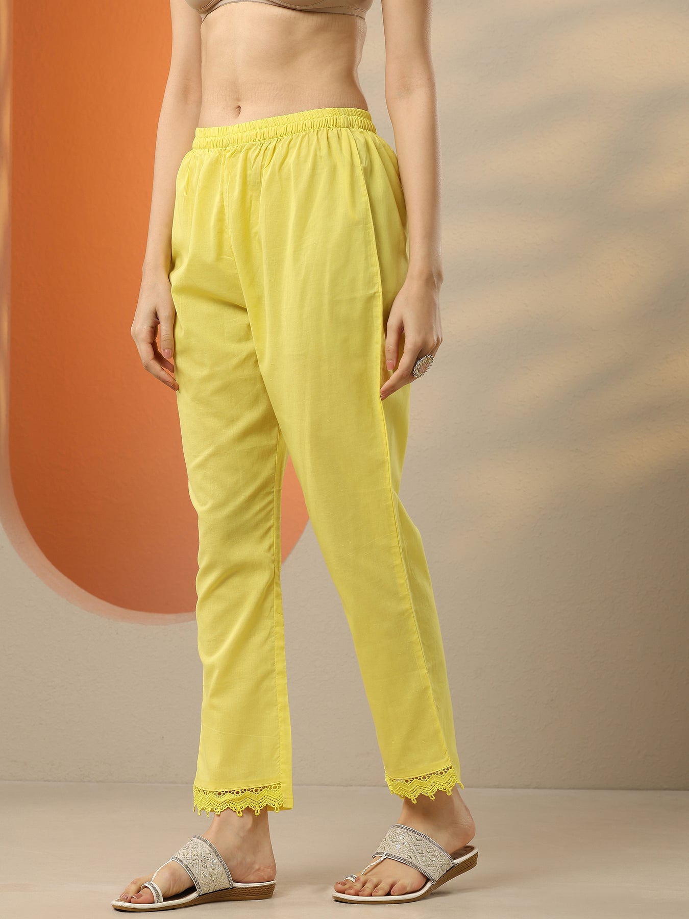 Our 3-piece Yellow Cotton Straight-fit Kurta Set features a Mandarin Collar neckline, Regular Sleeves, and statement Yoke. Complemented with Straight Pants with a Partially Elasticated waistband and 2 pockets, and an Embroidered dupatta. Adorned with Floral Embroidered, this style is perfect for Festive occasions.